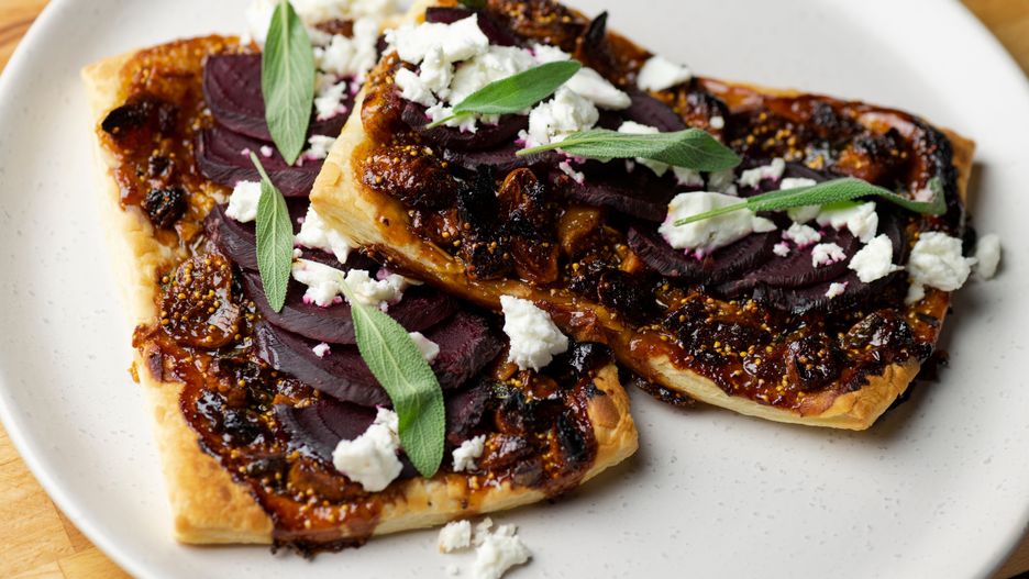 Przepis na ciasto francuskie z burakami, fetą i konfiturą figową