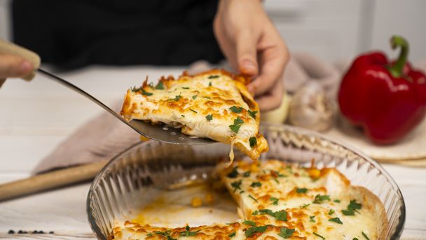 W kieszonkach z tortilli ukryj mięsny farsz z kolorowymi dodatkami i wstaw do piekarnika. Tyle wystarczy, aby na twoim stole pojawiła się prawdziwa uczta dla podniebienia. Zresztą sam się o tym przekonaj i koniecznie zapoznaj się z naszym przepisem krok po kroku. Dokładną instrukcję znajdziesz w wideo. Lista składników czeka poniżej.