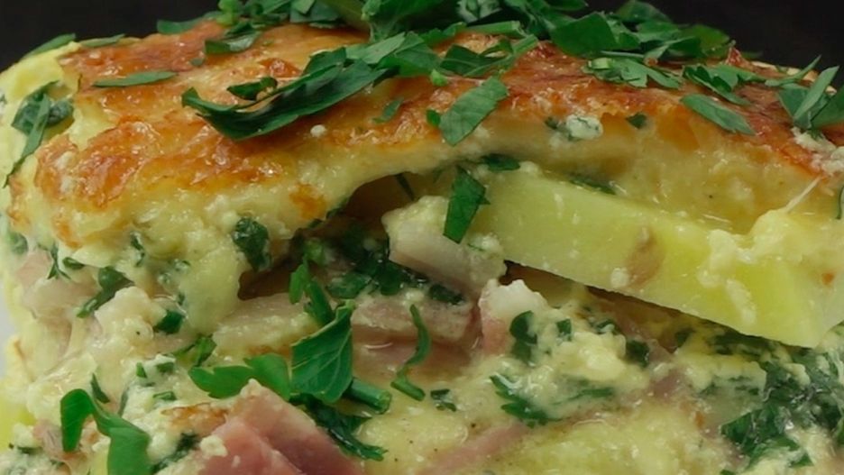 Zapiekanka ziemniaczana z serem, szynką, boczkiem i pietruszką