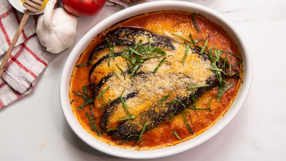 Dziś przygotowaliśmy prawdziwą ucztę. W roli głównej wystąpi bakłażan, którego najpierw nafaszerowaliśmy pomidorem i mozzarellą, a następnie zapiekliśmy w domowej roboty sosie marinara. Ślinka cieknie od samego patrzenia!
