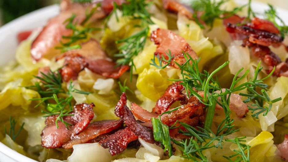 Zasmażana młoda kapusta – zasmażana młoda kapusta z boczkiem i koperkiem