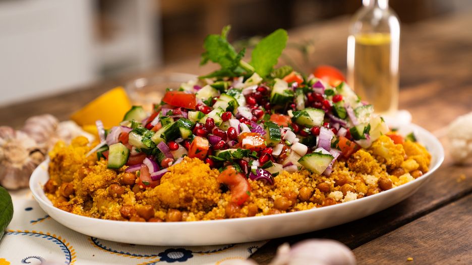 Ta sałatka przeniesie cię wprost do słonecznego Maroka, nawet gdy za oknem temperatury spadają poniżej zera. Orientalne nuty przypraw, takich jak kmin rzymski, kolendra, kurkuma i cynamon, mieszają się z delikatnością kalafiora i ciecierzycy, a chrupkie warzywa wprowadzają świeżość i rześkość. To idealna propozycja na lekką kolację, pożywny lunch lub oryginalną przekąskę na przyjęcie.