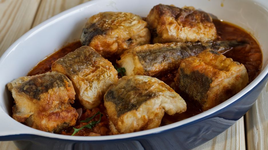 Zapomnij o rybie smażonej w panierce. Pieczona w pomidorach smakuje jak z greckiej tawerny
