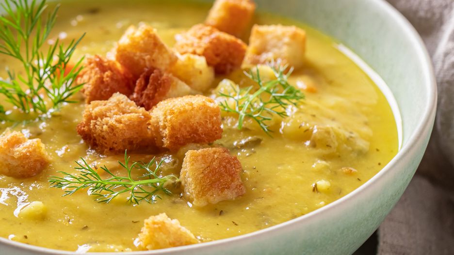Przepis na zupę krem z ogórków kiszonych z grzankami serowymi