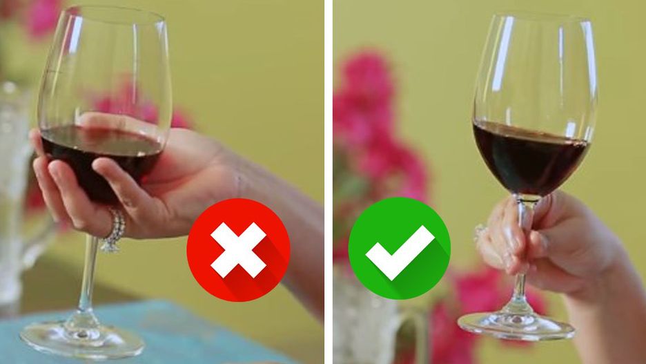 Jak się okazuje, można zaliczyć wpadkę nawet przy trzymaniu kieliszka z winem. Powinniśmy pamiętać, że zawsze należy trzymać lampkę za nóżkę, by nie ogrzewać trunku, który znajduje się w środku kieliszka.