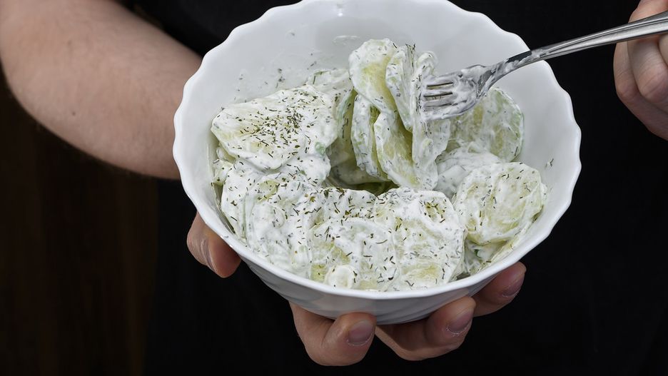 - Połącz pokrojone ogórki z sosem jogurtowo-cytrynowym i koperkiem.