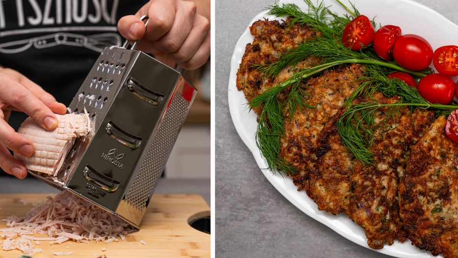 Zetrzyj na tarce szynkę i ser, dodaj jajka. Te kotleciki składną twoje serce