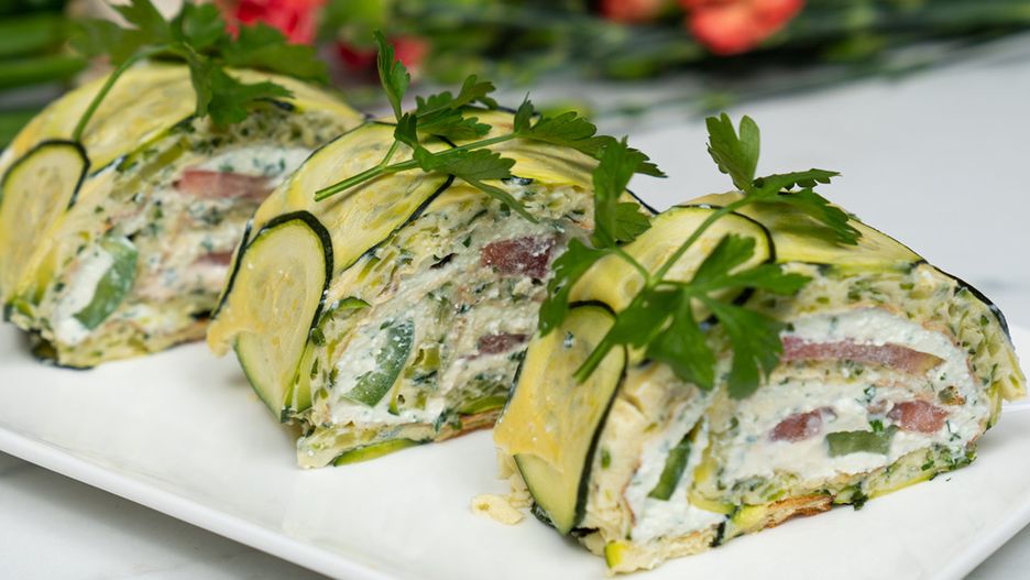 Zielona rolada z cukinii z twarożkiem i chrupiącymi warzywami