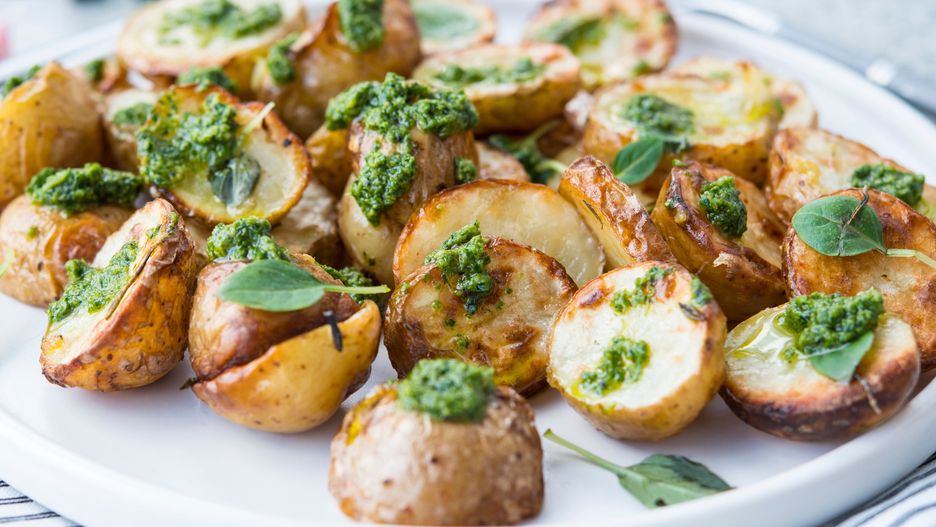Niektórzy traktują ziemniaki jako zwykły dodatek do obiadu, który wystarczy ugotować w osolonej wodzie, ale naprawdę warto poświęcić im więcej uwagi. W tej wersji są nie tylko chrupiące i smaczne, ale dodatkowo obtoczone pysznym, zielonym sosem.