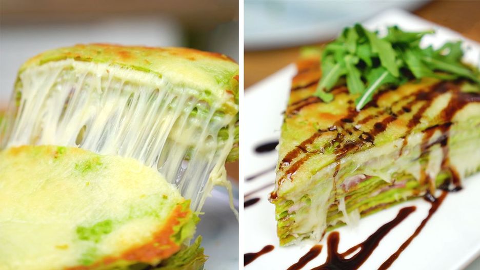 Zielony tort naleśnikowy z szynką i serem. Szybka i tania kolacja dla rodziny