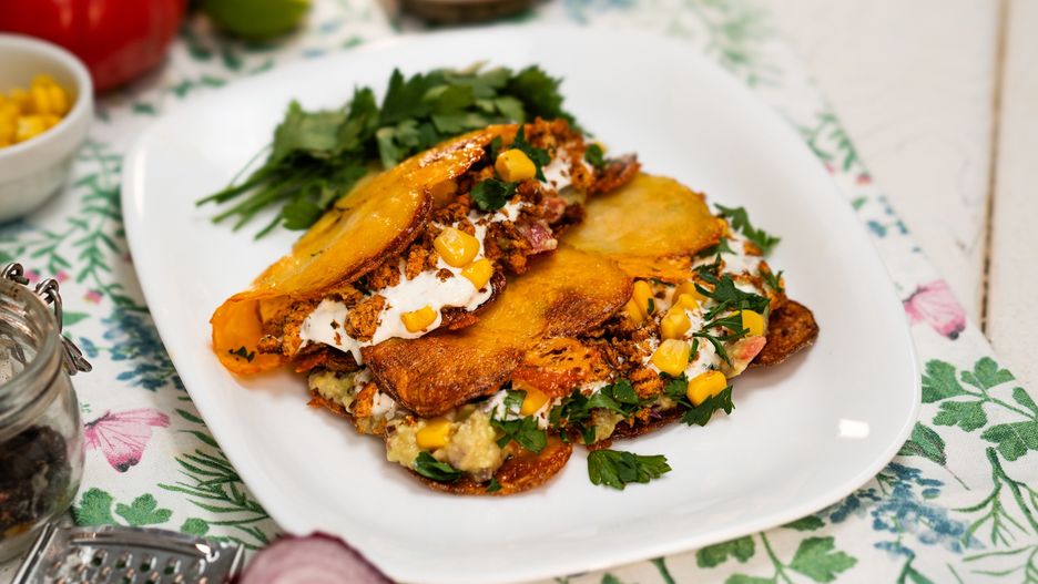 Ziemniaczane kanapki wyglądają nieco jak popularne tacos. Ich wnętrze również nawiązuje do kuchni meksykańskiej, ale zamiast mielonego mięsa, znaleźć można tutaj tofu. Jeśli do tej pory krzywiłeś się na jego widok, ten przepis odmieni twoje podejście i sprawi, że przekonasz się, że tofu zdecydowanie da się lubić. W szczególności, gdy towarzyszą mu uwielbiane przez Polaków ziemniaki.