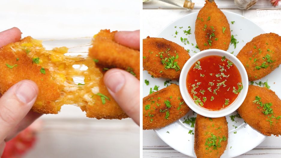 Ziemniaczano-serowe pałki z kurczaka w chrupiącej panierce