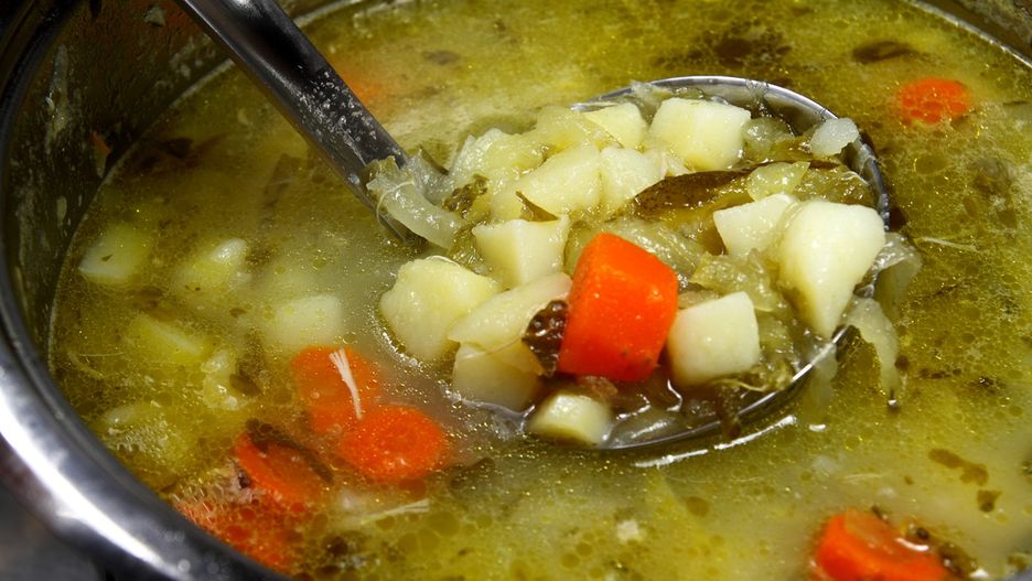 - Wrzuć warzywa do garnka z gorącym bulionem i gotuj, aż staną się miękkie.