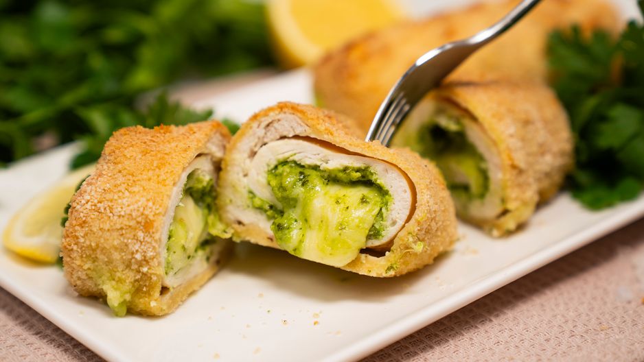 Soczyste roladki z piersi kurczaka, wypełnione aromatycznym pesto pietruszkowym z migdałami i czosnkiem, a do tego ciągnąca się mozzarella. Całość obtoczona w złocistej panierce i upieczona na chrupko w piekarniku. Ten przepis łączy prostotę z wyjątkowym smakiem – idealny na rodzinny obiad lub kolację z przyjaciółmi. Gotowe w 30 minut, bez smażenia i z dodatkiem zdrowej zieleniny!