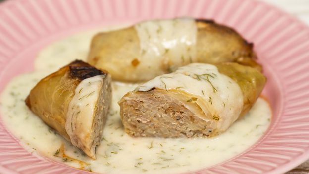 Został ci po świętach spory zapas białej kiełbasy? Wykorzystaj ją do zrobienia gołąbków z sosem chrzanowym