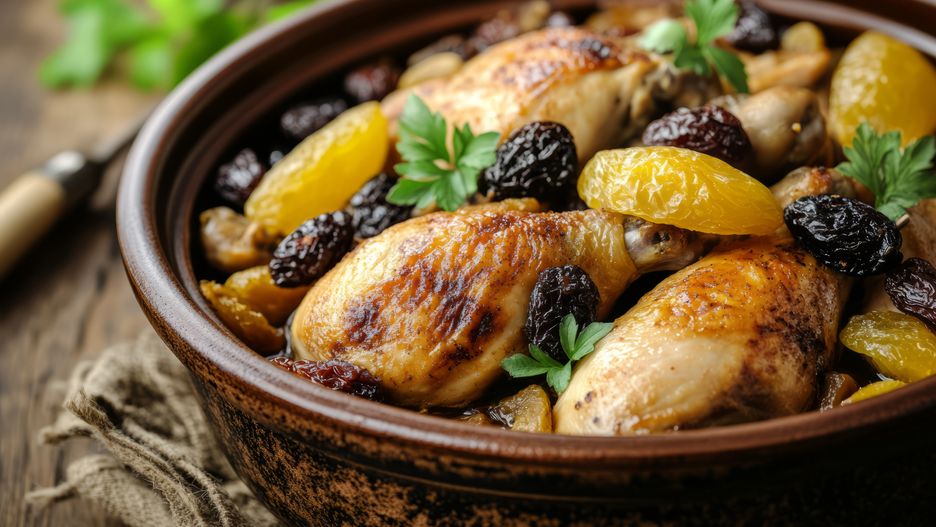W polskiej kuchni połączenie mięsa z owocami, zarówno tymi świeżymi, jak i suszonymi nie jest zbyt popularne. Jednak pomału otwieramy się na tego typu dania. Na święta pieczesz schab ze śliwką? Lubisz kaczkę z jabłkami czy pomarańczami? Powinien ci także zasmakować kurczak z suszonymi owocami. Potrzebne będą śliwki i morele, ale można także w mniejszej ilości sięgnąć po suszone jabłka czy gruszki. Ich smak mogą uzupełnić orzechy — będą pasować przede wszystkim włoskie i laskowe.