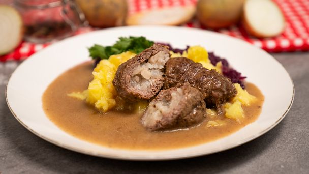 Na pyszne i oryginalne danie regionalne składa się mięso wołowe w postaci zrazów z dodatkiem posiekanej cebuli, słoniny i bułki tartej. Małe roladki obsmaża się na patelni, po czym dusi się je i podaje z kremowym sosem. Do zrazów możesz dodać ziemniaki lub kluski śląskie. Świetnym dodatkiem będzie też surówka lub kapusta.