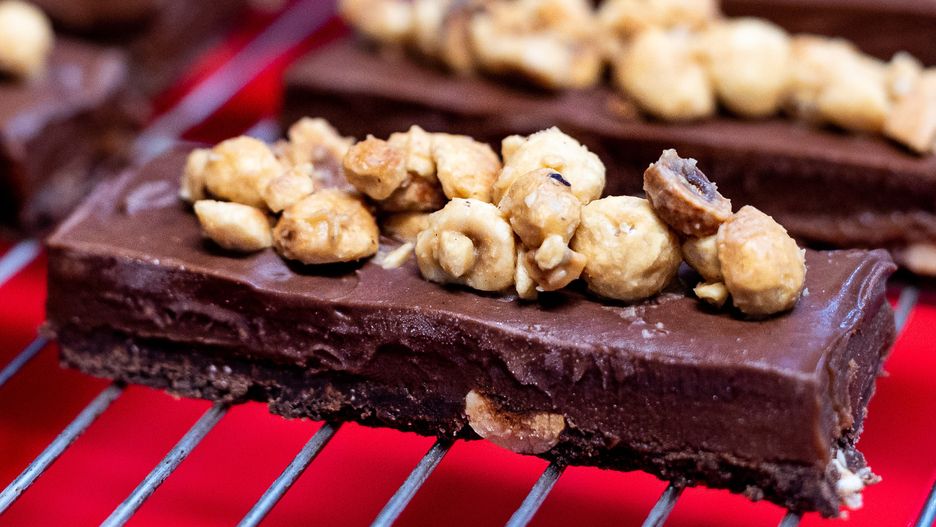 - Ostudzoną czekoladę wylej na słony karmel, wygładź szpatułką i opcjonalnie możesz posypać górę dodatkowo orzechami. Całość odstaw do lodówki na 2 godziny.