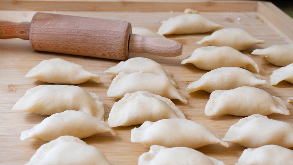 - Formowanie pierogów: Podziel ciasto na mniejsze kawałki i rozwałkuj je na cienkie placki. Za pomocą szklanki wycinaj krążki. Na każdy krążek nałóż niewielką ilość farszu, a następnie sklej krawędzie pierogów.