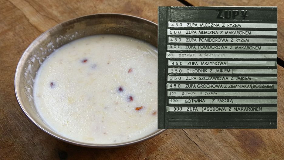 Jak widzimy na archiwalnych zdjęciach, jadłospis w barach mlecznych zawierał niemało pozycji. Mamy twarożki ze śmietaną o różnych smakach, zupę mleczną z ryżem lub makaronem, a także pomidorową, jarzynową, a nawet chłodnik z jajkiem czy grochową z boczkiem. Na uwagę zasługuje zupa jagodowa z makaronem - czyli peerelowskie danie na upały z sentymentem odtwarzane do dzisiaj.