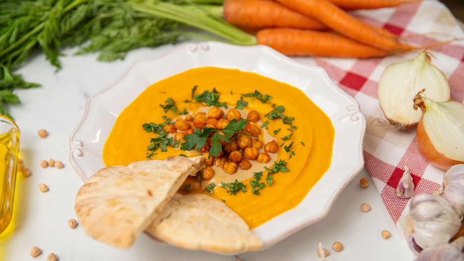 Aksamitna, pełna smaku zupa krem z pieczonych marchewek to przepis na zdrowy i smaczny obiad dla całej rodziny. Podana z chrupiącą ciecierzycą smakuje najlepiej.