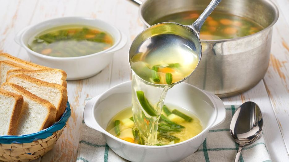 - Ustaw wysoką moc palnika i doprowadź do wrzenia. Następnie zmniejsz moc palnika tak, aby wywar tylko lekko mrugał. Gotuj zupę na małej mocy palnika przez 60 minut. Możesz gotować ją trochę dłużej, jeśli chcesz.
